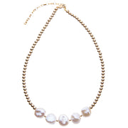 16" layering necklace with 4mm 14k gold-filled beads and featuring five freshwater baroque pearls. Each peal is one of a...
