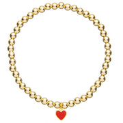 14K gold and enamel HEART charm on yellow 4mm 14K gold-filled beaded bracelet