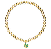 14K gold and enamel  "LUCKY" Clover on yellow 4mm 14K gold-filled beaded bracelet
